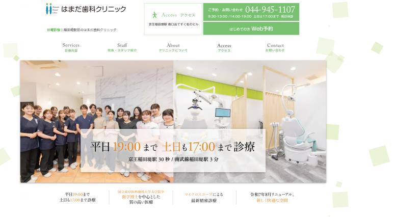 | 診療時間 | 月~金9:00~12:00/14:00~19:00(※水曜のみ18:00まで) 土9:00~12:00 |